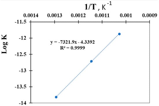 By applying the Arrhenius Equation (2), it could calculate the apparent activation energy of oxidation of the alloy as illustrated in Figure 3 [,].