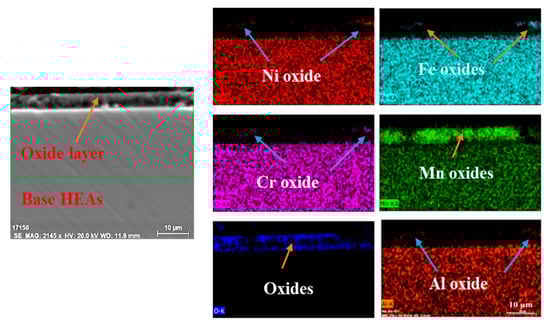 Mapping of the oxide layer formed on oxidized HEA at 700 °C for 50 h.
