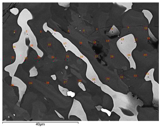 The average chemical composition of the solid solution and silicide in the microstructure shown in Figure 5 is given in Table 5.