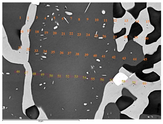 The average chemical composition of the solid solution and silicide in the microstructure shown in Figure 7 is given in Table 6.