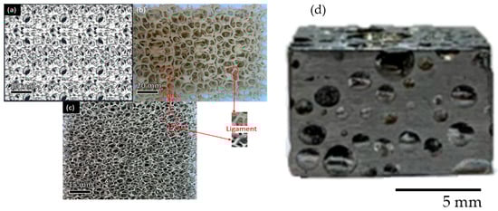(a–c) open-cell foam []; (d) closed-cell foam. Reprinted from Ref. [].