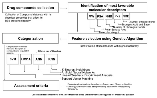 - Singh, M.; Divakaran, R.; Konda, L.S.K.; Kristam, R. A classification model for blood brain barrier penetration. J. Mol. Graph. Model. 2020, 96, 107516. [Google Scholar] [CrossRef]