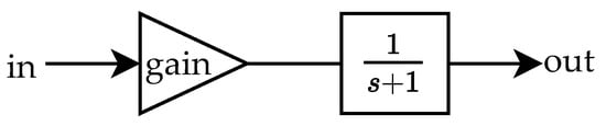 As an example, consider the system given in Figure 3. It is implemented in SystemC AMS with the TDF MoC as given in Figure 4. To implement continuous-time linear transfer functions in the Laplace domain, a dedicated solver object sca_tdf::sca_ltf_nd is provided by the TDF MoC. The block is implemented with this object and is defined at lines 5 to 7 in Figure 4a, initialized at lines 4 and 5 in Figure 4b, and processed at line 7 in Figure 4b. The gain is defined at line 8 in Figure 4a, initialized in the constructor, and processed at line 7 in Figure 4b.