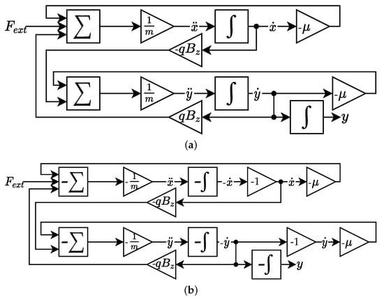 from which the system-level block diagram of the circuit seen in Figure 17a is generated. The numerical values for the parameters are chosen as 10 g for m, 10 g s for , 10 C for q, and 10 T for .