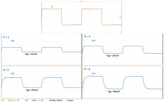 Measured transient responses to a 50 mVpp square-wave input signal.