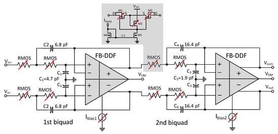 - Ye, L.; Shi, C.; Liao, H.; Huang, R.; Wang, Y. Highly power-efficient active-RC filters with wide bandwidth-range using low-gain push-pull opamps. IEEE Trans. Circuits Syst. I Regul. Pap. 2012, 60, 95–107. [Google Scholar] [CrossRef]