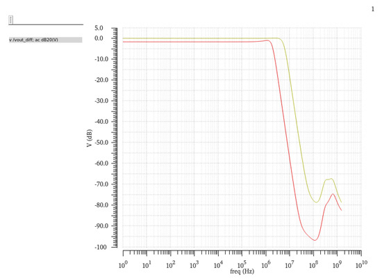 Filter chip−level post layout simulation result with two different configurations.