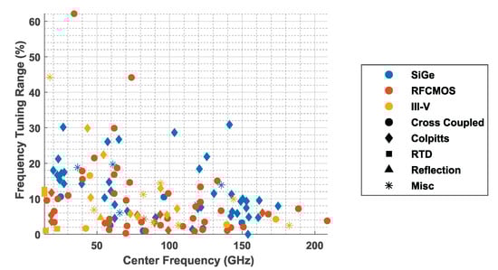 - Rimmelspacher, J.; Weigel, R.; Hagelauer, A.; Issakov, V. 30 % Frequency-tuning-range 60 GHz push-push VCO in 28 nm bulk CMOS technology. In Proceedings of the 2018 IEEE 18th Topical Meeting on Silicon Monolithic Integrated Circuits in RF Systems (SiRF), Anaheim, CA, USA, 14–17 January 2018; pp. 30–32. [Google Scholar] [CrossRef]