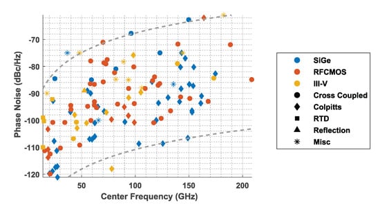 - Rimmelspacher, J. Integrated VCO Performance Survey. Available online: http://www.elektronik.ovgu.de/Rimmelspacher_VCO (accessed on 27 April 2022).