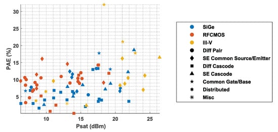 - Wang, H.; Huang, T.; Mannem, N.S.; Lee, J.; Garay, E.; Munzer, D.; Liu, E.; Liu, Y.; Lin, B.; Eleraky, M.; et al. Power Amplifiers Performance Survey 2000-Present. Available online: https://gems.ece.gatech.edu/PA_survey.html (accessed on 27 April 2022).
