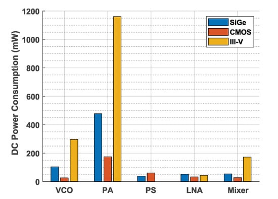 - Wallace, H.B. An application of advanced SiGe to millimeter-wave phased arrays. In Proceedings of the 2012 IEEE/MTT-S International Microwave Symposium Digest, Montreal, QC, Canada, 17–22 June 2012; pp. 1–3. [Google Scholar] [CrossRef]