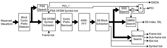 - We demonstrate the functionality of the proposed end-to-end 5G CS PHY on the GNU Radio and Universal Software Radio Peripheral (USRP) based radio frequency network-on-chip (RFNoC) platform from Ettus Research [27,28]. We demonstrate the 66% reduction in SS search time by efficiently utilizing the Field-Programmable Gate Array (FPGA) available on USRP compared to conventional GNU Radio-based software implementation.