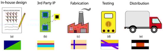 - Xu, X.; Rahman, F.; Shakya, B.; Vassilev, A.; Forte, D.; Tehranipoor, M. Electronics Supply Chain Integrity Enabled by Blockchain. ACM Trans. Des. Autom. Electron. Syst. 2019, 24, 1–25. [Google Scholar] [CrossRef] [PubMed]
