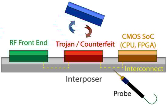 - Vashistha, N.; Al Hasan, M.M.; Asadizanjani, N.; Rahman, F.; Tehranipoor, M. Trust Validation of Chiplets using a Physical Inspection based Certification Authority. In Proceedings of the 2022 IEEE 72nd Electronic Components and Technology Conference (ECTC), San Diego, CA, USA, 31 May–3 June 2022; pp. 2311–2320. [Google Scholar] [CrossRef]