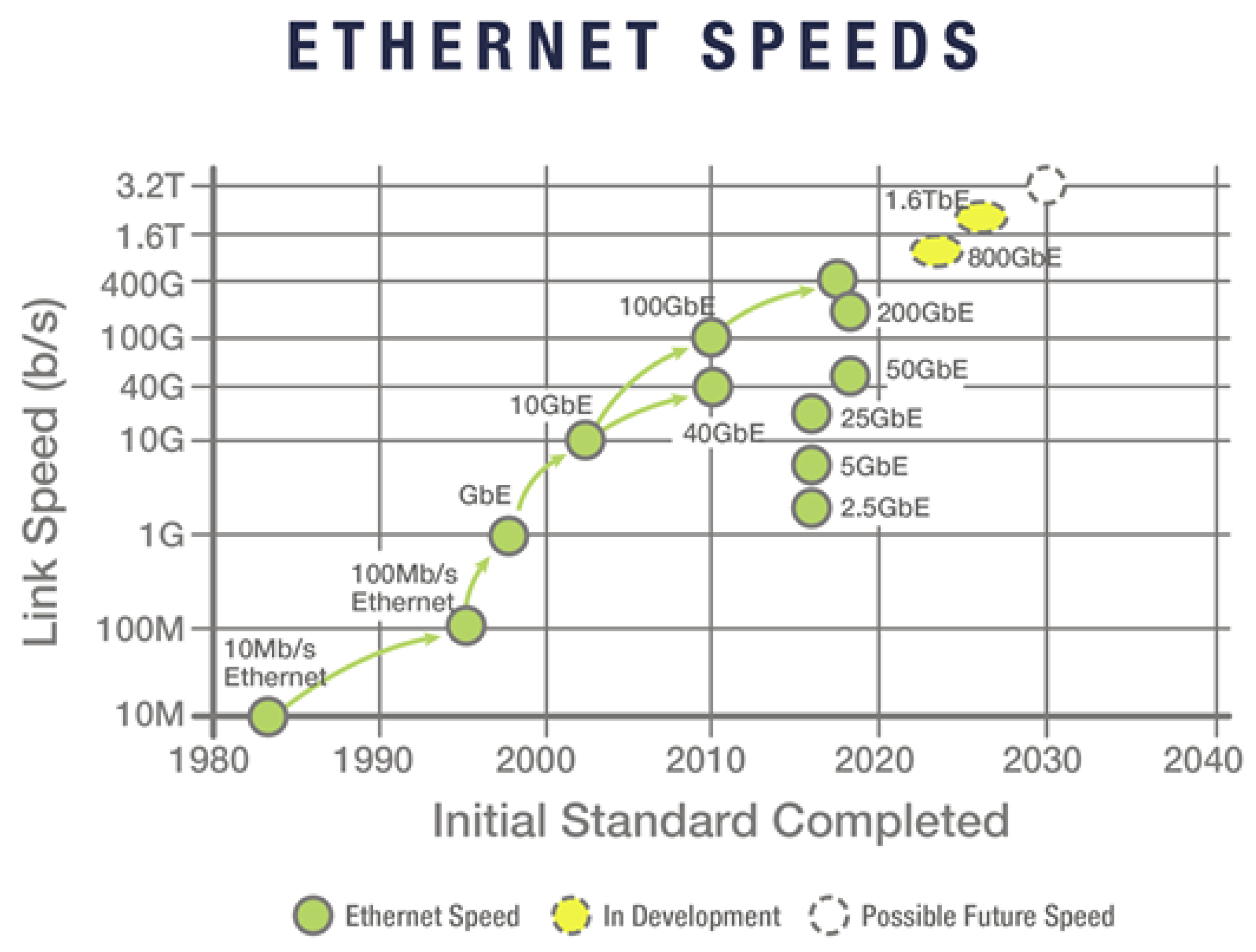 - Ethernet Alliance. 2025 Ethernet Roadmap. 2025. Available online: https://ethernetalliance.org/technology/ethernet-roadmap/ (accessed on 28 July 2025).
