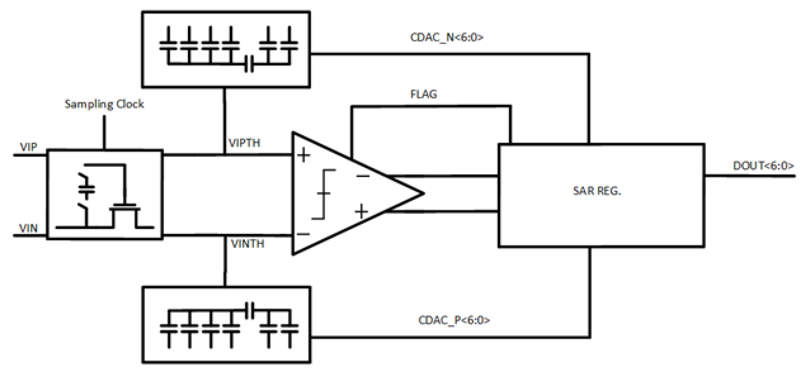 To address these challenges, ADC-based SerDes architectures have emerged as a promising solution. These systems leverage time-interleaved analog-to-digital converters (ADCs) and digital equalization to achieve high-speed data recovery with improved robustness to channel impairments. In particular, successive approximation register (SAR) ADCs are attractive due to their low power consumption, scalability in advanced CMOS nodes, and suitability for medium-resolution, medium-speed applications [