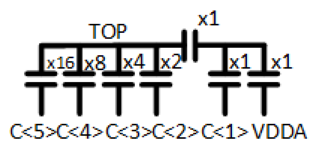 Figure 5). The most significant bits (MSBs) are binary-weighted, while the least significant bits (LSBs) use a split array for improved linearity and reduced area. The DAC supports energy-efficient switching schemes such as monotonic and set-and-down switching [