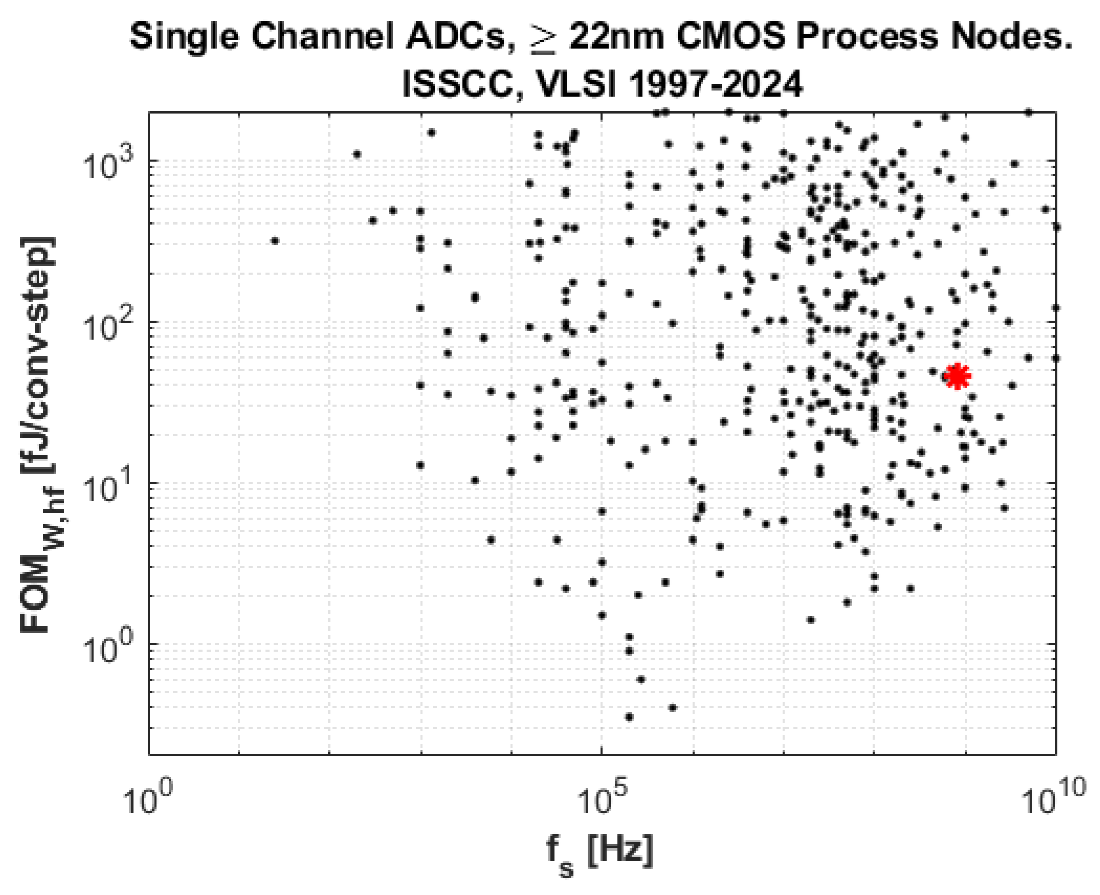 This value reflects a strong balance between resolution, speed, and power and suggests competitiveness with other ADCs in similar technology nodes [