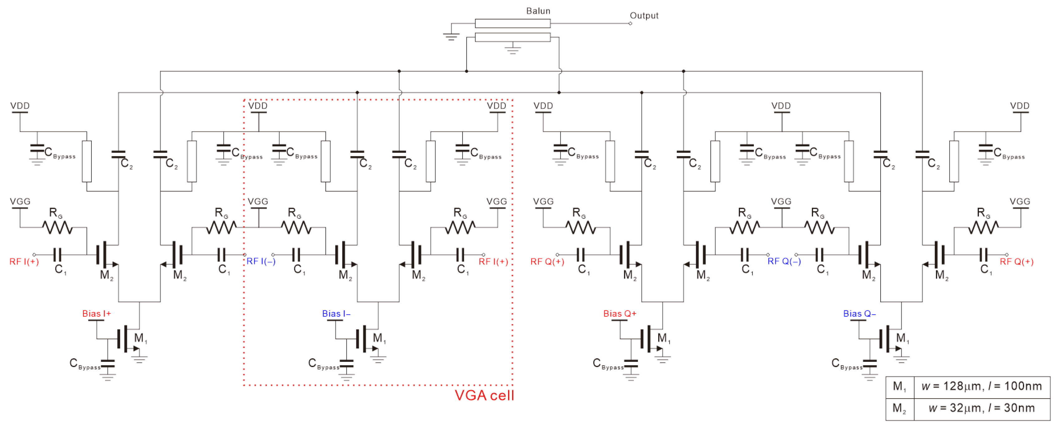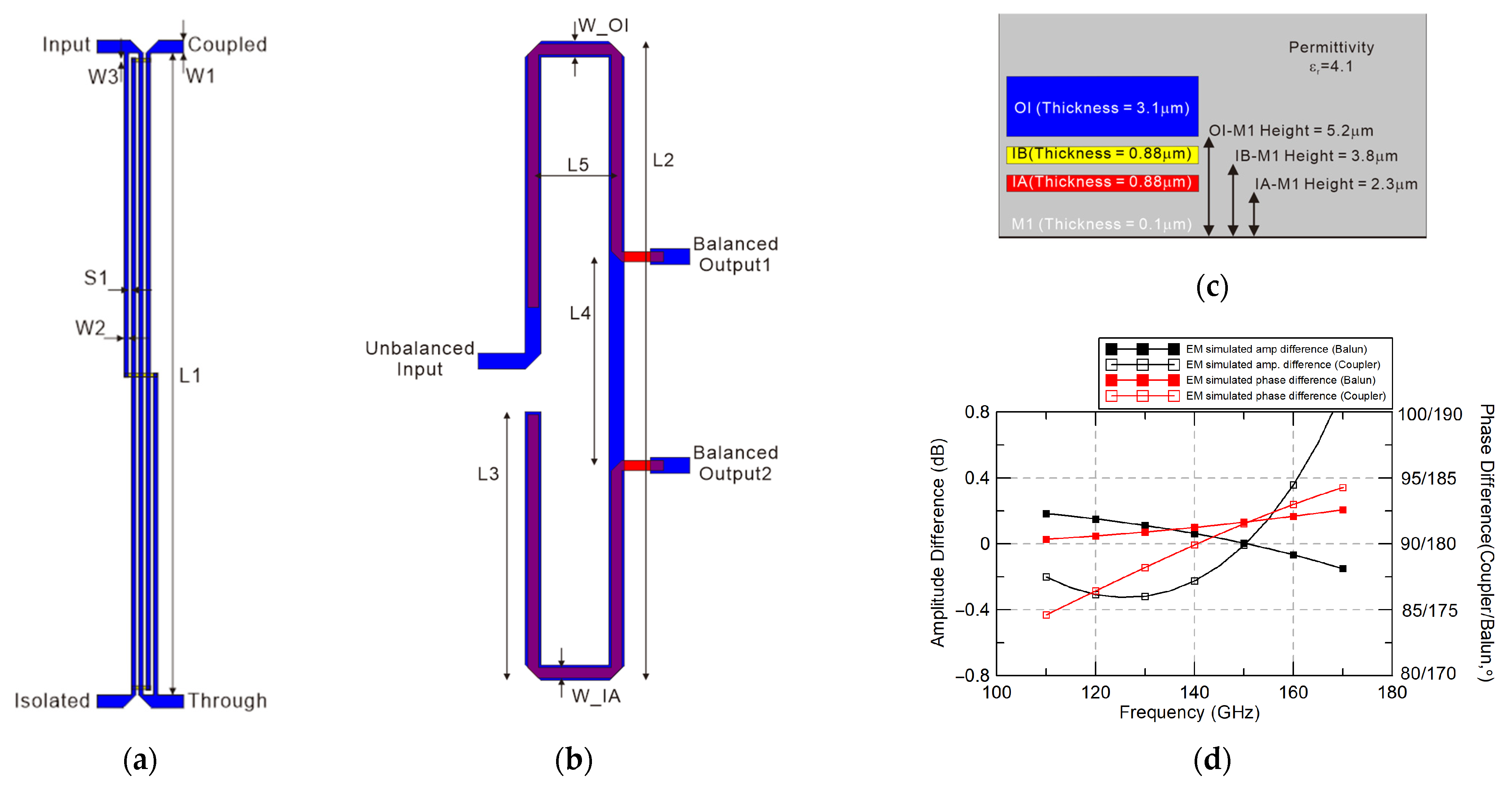 | W_IA (Balun IA Layer width) | 4 μm | W_OI (Balun OI Layer width) | 6 μm |