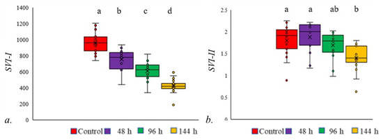 Boxplot showing the responses of SVI-I (a) and SVI-II (b) in unaged and aged varieties. Mean values of each treatment were separated by performing Tukey’s HSD pair-wise test with p-value ≤ 0.05. Letters above each boxplot indicate significantly different groups.