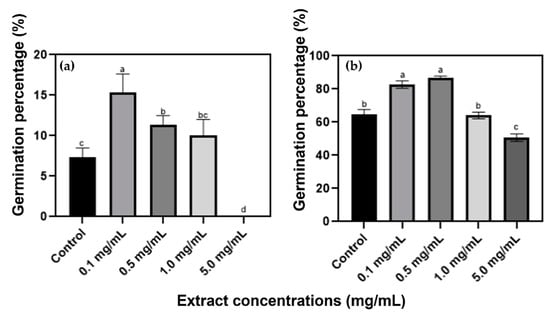 Chicago/Turabian StyleLázaro-dos-Santos, Marcelly Eduarda da Cunha, Nadine Tonelli Cavalari, Everson dos Santos Ribeiro, Henrique Henning Boyd da Cunha, Livia Marques Casanova, Fernanda Reinert, Bianca Ortiz-Silva, and Luana Beatriz dos Santos Nascimento. 2024. "Effects of Aqueous Extracts of Lantana camara L. on Germination of Setaria viridis (L.) P.Beauv. Seeds with Different Degrees of Dormancy" Seeds 3, no. 4: 677-688. https://doi.org/10.3390/seeds3040044