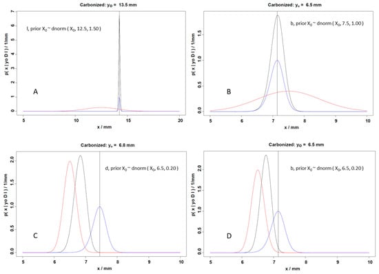 Post-carbonization, each seed was re-examined to quantify morphological transformations. Preliminary analyses revealed primary alterations in dimensional metrics and chromatic properties. A simple linear regression model (Figure 4A–C) was developed to mathematically characterize seed metamorphosis, represented by the generalized formula y = β1 + β2x + ϵ, enabling quantitative documentation of carbonization-induced morphological variations. Where each term represents:
