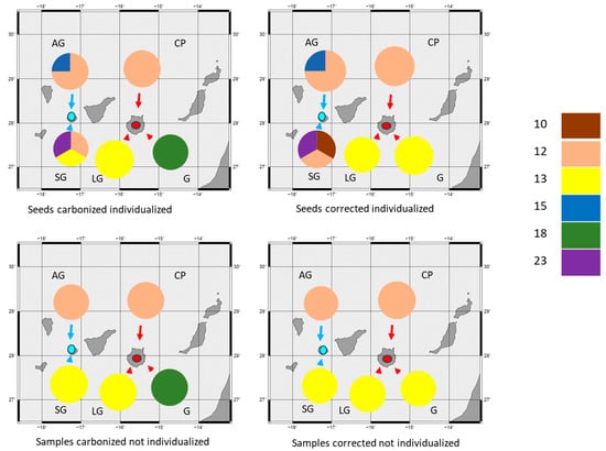 - Morales, J.; Gil, J. Gathering in a new environment, the use of wild food plants during the first colonization of the Canary Islands, Spain (3–2nd BC to 15th AD). In Plants and People, Choices and Diversity Through Time; Chevalier, A., Marinova, E., Peña-Chocarro, L., Eds.; EARTH Series; Oxbow Books: Oxford, UK, 2014; Volume 1, pp. 216–227. [Google Scholar]