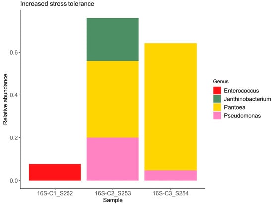 Relative abundance of bacterial ASVs capable of enhancing plant stress resistance.