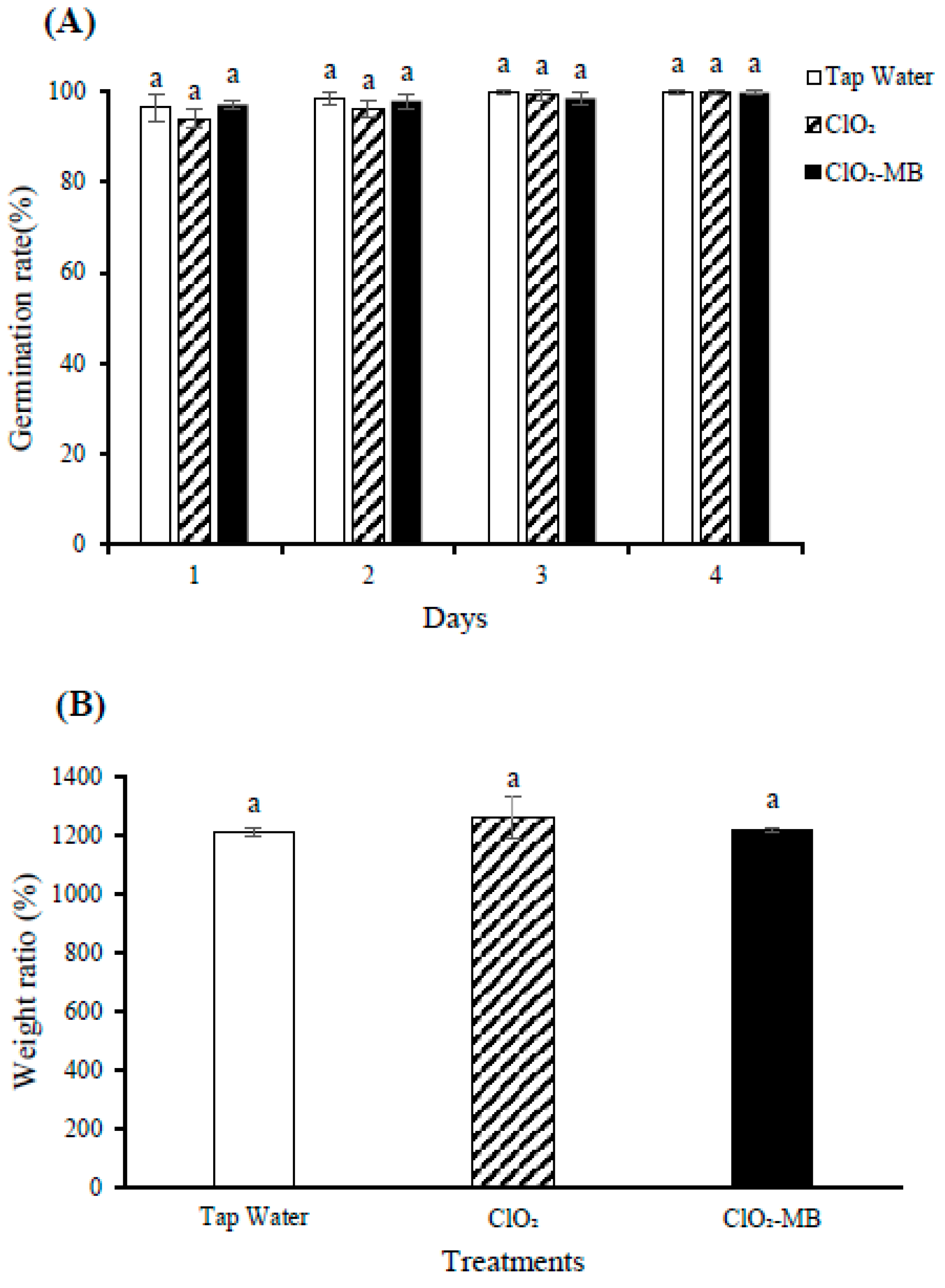 | ClO2 | 6.2 ± 0.0 c | 764.3 ± 16.9 b | 660.3 ± 4.6 a | 25.1 ± 0.4 b | |