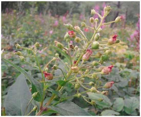 Reports suggest that plants belonging to the genus Scrophularia L., which is native to the Korean Peninsula, are classified into six species and one variety (seven taxa). This classification is based on external morphology such as flowering time; growth traits of inflorescence, peduncle, floret, calyx, stem, and leaf; characteristics of root and seed; and internal transcribed spacer (ITS) DNA sequence data [,,]. Among them, three species, including S. koraiensis Nakai, S. cephalantha Nakai, and S. takesimensis Nakai, were reported to be endemic only to the Korean Peninsula in East Asia [,].