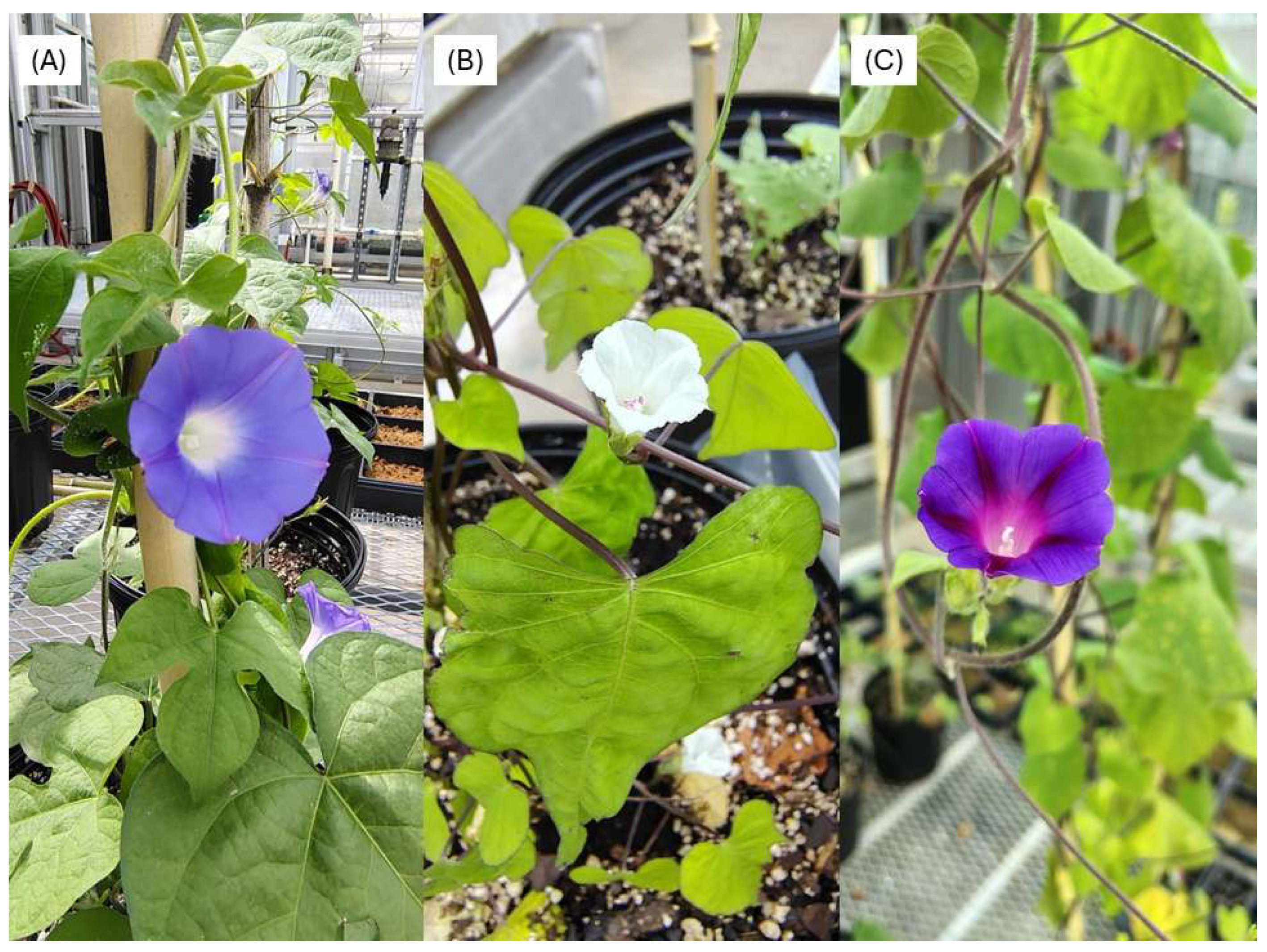 | Species | Ipomoea lacunosa | Ipomoea hederacea | Ipomoea purpurea |