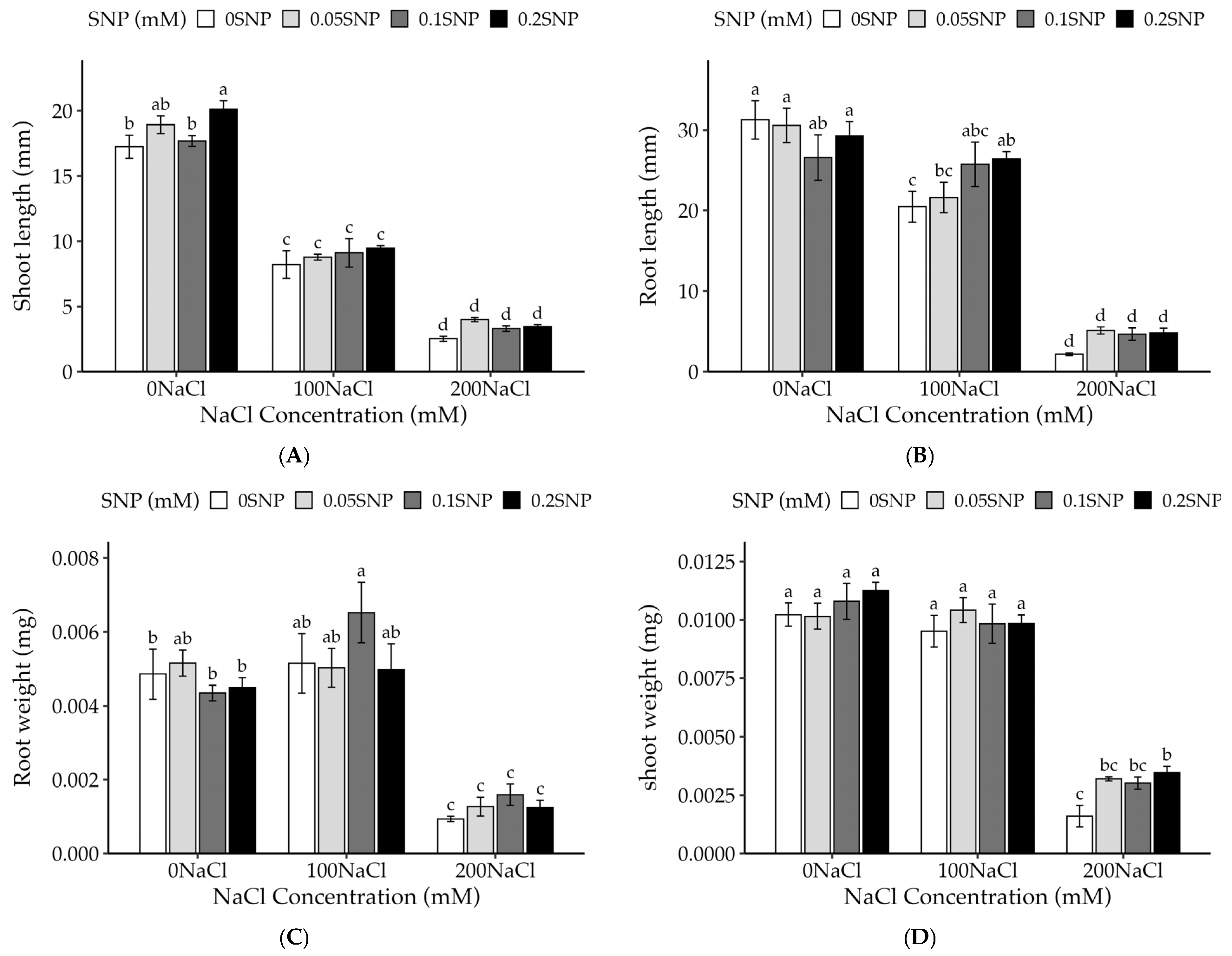 3.2. Effect of SNP on Growth of Salt-Stressed Thai Eggplant Seedlings