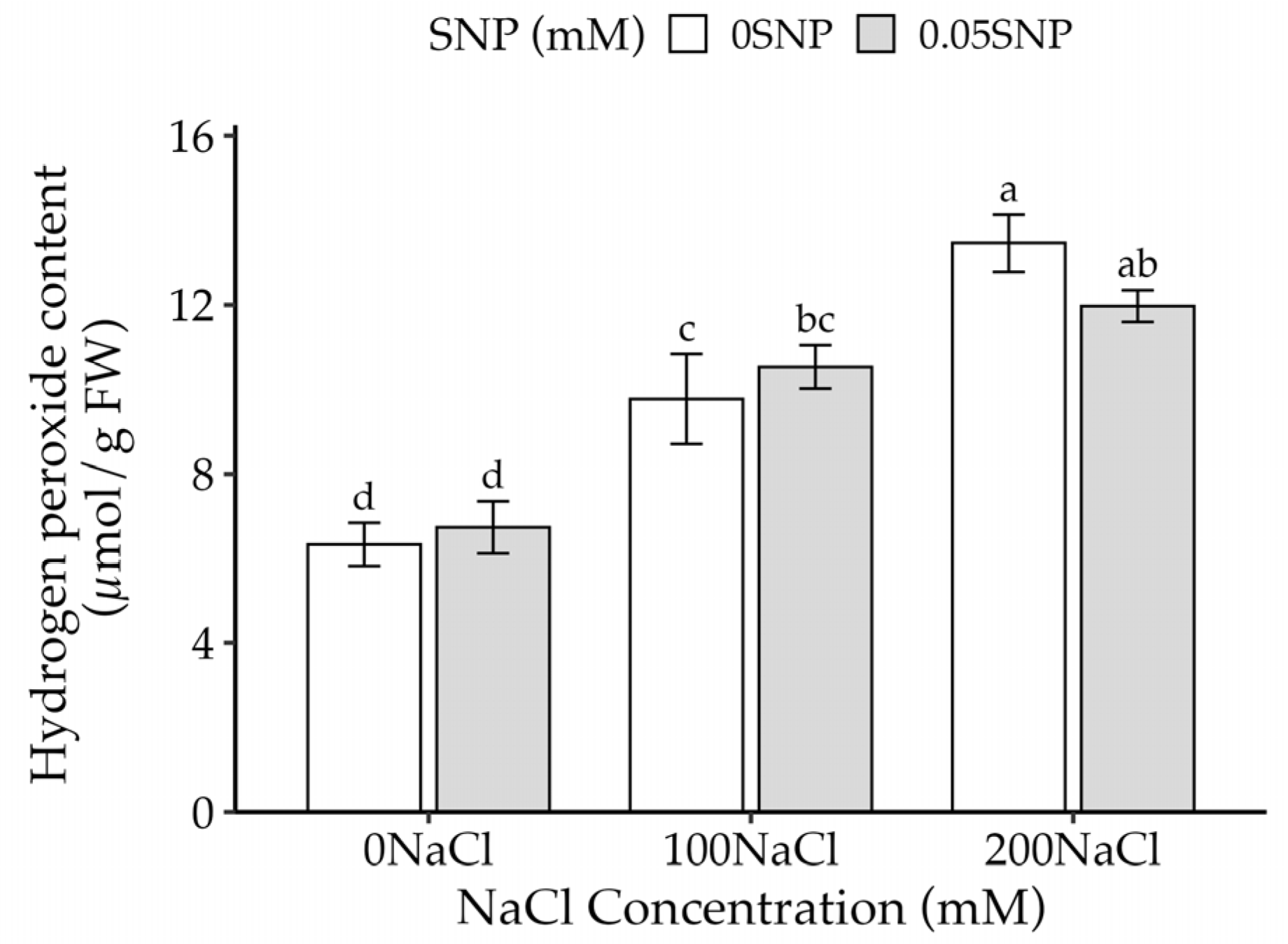 3.4. Effect of SNP on Hydrogen Peroxide (H2O2) Content in Salt-Stressed Thai Eggplant Seedlings