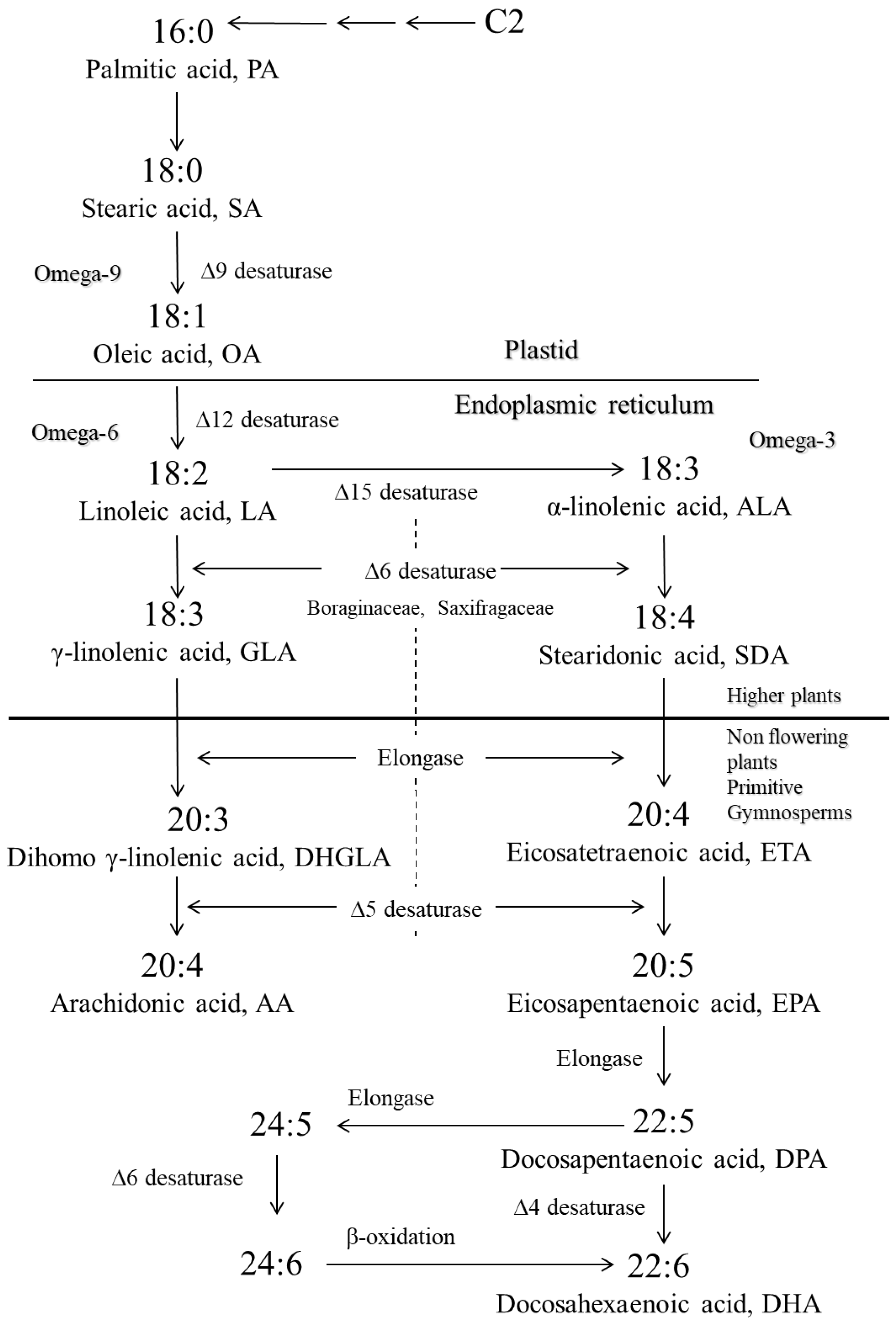 - Ruiz-López, N.; Sayanova, O.; Napier, J.A.; Haslam, R.P. Metabolic engineering of the omega-3 long chain polyunsaturated fatty acid biosynthetic pathway into transgenic plants. J. Exp. Bot. 2012, 63, 2397–2410. [Google Scholar] [CrossRef]