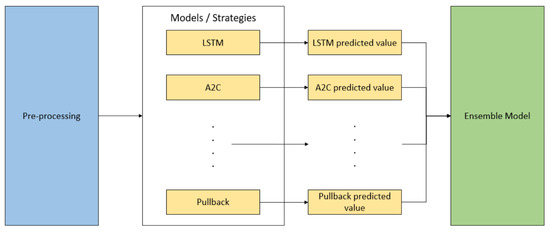 With reference to Figure 6, the base learner module consists of various machine learning classifier models. All models/strategies will receive the preprocessed input from the preprocessing module. The predicted output of each model/strategy will go into the Ensemble model module to make the final prediction. A total of 7 models/strategies are used in the ensemble for this study, which include: