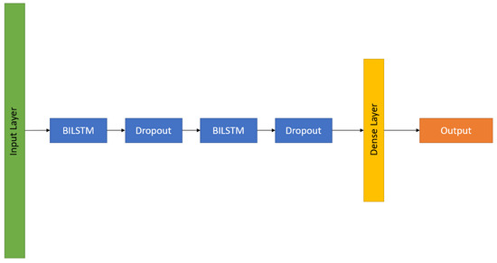 Figure 10 shows the bidirectional LSTM architecture used in this project. The return sequence parameter is set to True to obtain all the hidden states at the first LSTM layer. A drop out of 25% at the first dropout layer and 50% at the second dropout layer is added to generalize the model while minimizing overfitting.