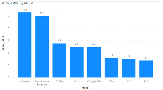 The Action Predictor module uses an ensemble technique, where results from several ML models are combined together to give a final predicted buy/sell action output. As compared to single-model based predictions, ensemble models have the advantage to potentially reduce the variance of predictions and reduce generalization error, resulting in better performance than the former approach [25]. This makes it applicable for the Forex markets as they tend to be very volatile, which makes predictions very prone to high-variance errors. Various works have incorporated ensemble methods to achieve state-of-the-art performance [36,37]. Other studies involved in stock market price prediction have reported that ensemble models produced a higher accuracy prediction as compared to single models [38,39].