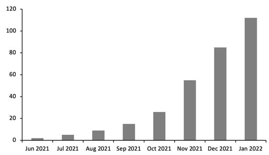 Figure 1 shows the cumulative number of mobile apps that update their name to include the term “Metaverse” on a monthly basis. Additionally,