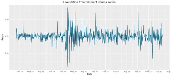 Live Nation Entertainment log-returns series from 2019 to June 2022.