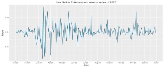 As shown in Figure 2, we can observe that within a few months the company reached the highest and lowest returns. According to [10], we can understand that LYV announced the cancellation of almost all global events until the end of March due to the COVID-19 pandemic, which directly led to the drop in LYV’s stock price by approximately 50% in March 2020. LYV’s stock price dropped by approximately 50% in March, and despite a subsequent recovery, the net drop was 25%. This also explains why LYV’s returns reached their lowest in March 2020 [11].