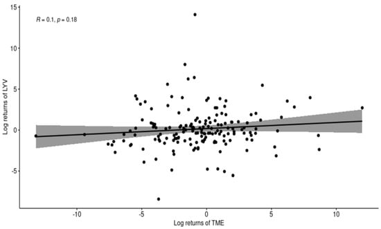Because both TME and WMG represent recorded music, we first explored the relationship between the log return of TME and LYV before conducting a study of the relationship between WMG and LYV.