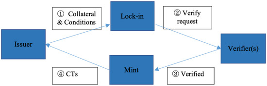 In practice, two types of CT are used, one is an obligation-type, the other is a right-type. For the obligation-type, there are two processes of issuing (aka tokenized collateral), with the first process locking-in collateral. It is very convenient for crypto collateral, however IoT devices are required for physical collateral, which is not address in this paper. Then, as the second process, CT’s backed by collaterals are minted.