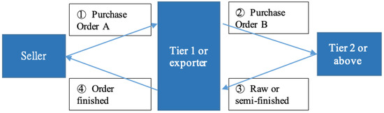 The vertical relationship is also portrayed as N + 1 + N. The first N is the upstream manufacturer, 1 is the core manufacturer, and the second N is downstream manufacturer or distribution channels. The types of SCF in the vertical relationship include receivables purchase agreements, loans and prepayments [5]. There are also three other types according to the specific supply chain process: purchase order financing, inventory financing, and accounts receivable financing after delivery happened [3]. In addition, letters of credit and bank guarantees are used in international trade which are classified as horizontal relationships, and which can improve the enabling framework of SCF [5]. The vertical and horizontal relationship increases the difficulty for financial institutions to clarify the relationship with core enterprises in financing, and reduces the willingness of core enterprises to guarantee supply chain manufacturers, reducing the overall effectiveness of SCF. The solution proposed in this study, is applicable to the relationships as shown in Figure 1, and covers the cash flow management of the supply chain.