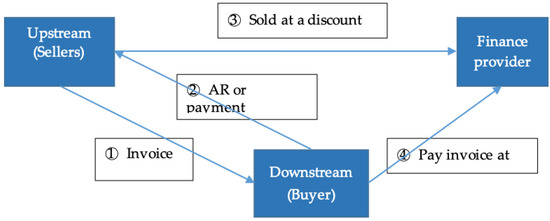 - Liebl, J.; Hartmann, E.; Feisel, E. Reverse Factoring in the Supply Chain: Objectives, Antecedents and Implementation Barriers. Int. J. Phys. Distrib. Logist. Manag. 2016, 46, 393–413. [Google Scholar] [CrossRef]