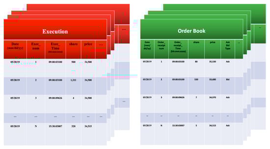 We utilized non-aggregated level 3 market data, also known as market By order (MBO) data, which is one of the most granular forms of market data (Pardo et al. (2022) [24]). As they are an order-based data that contain information of individual queue position, they allow for a more precise simulation compared with less granular market data. LOB data consolidate all orders of the same price into a single price level, which does not allow for the precise tracking of the positions of synthetic orders in the queue along with other orders in the same price level. The dataset (as the dataset is proprietary, we are unable to make it publicly available) includes 50 stocks listed on Korea Stock Exchange (KRX) from 1 January 2018 to 1 January 2020.