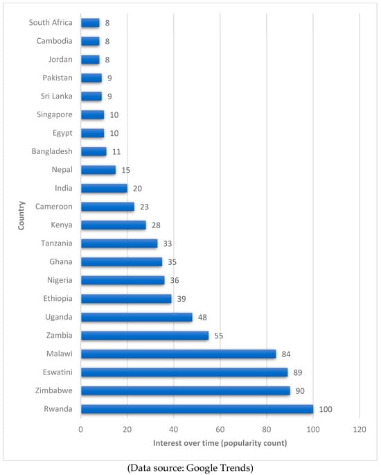 The data used for this study are publicly available on the Google Trends database. The data can be found at the following link: https://trends.google.com/trends/, accessed on 1 December 2023.