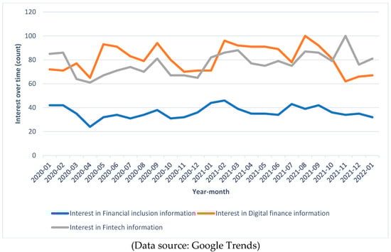 Interest in financial inclusion, Fintech, and digital finance information (January 2020–December 2021).