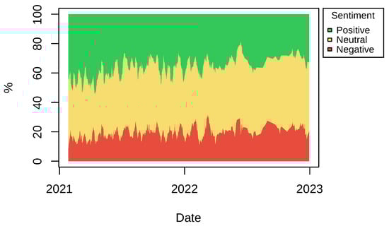 - Aggregation: Sentiment scores were aggregated on a daily basis to track sentiment trends over time. The distribution of comments into positive, neutral, and negative categories was calculated for each day.