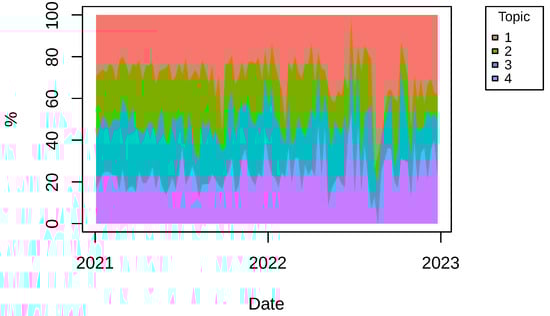 Our topic modeling using LDA identified four main topics discussed in the subreddit, with distinct temporal patterns. For instance, the increase in discussions related to scams, dips, and pumps (topic 1) during periods of market decline highlights the community’s focus on market anomalies and fraudulent activities during bearish trends. This finding supports our hypothesis that specific market events trigger focused discussions on related topics, aligning with similar findings [].