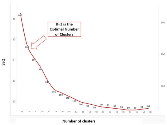 Representation of the optimal number of clusters through the Elbow method applied to the k-means algorithm.